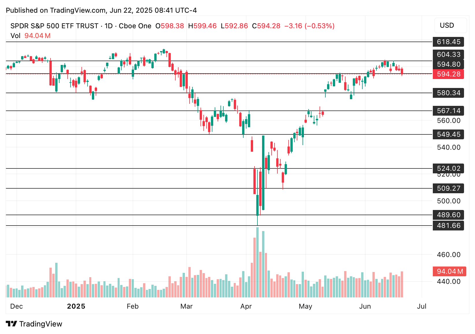 I always start by reviewing the major indices—$SPX (S&P 500), $QQQ (Nasdaq 100), $DIA (Dow), $ARKK (for growth/momentum tone), and even BTC (Bitcoin) for broader risk appetite.