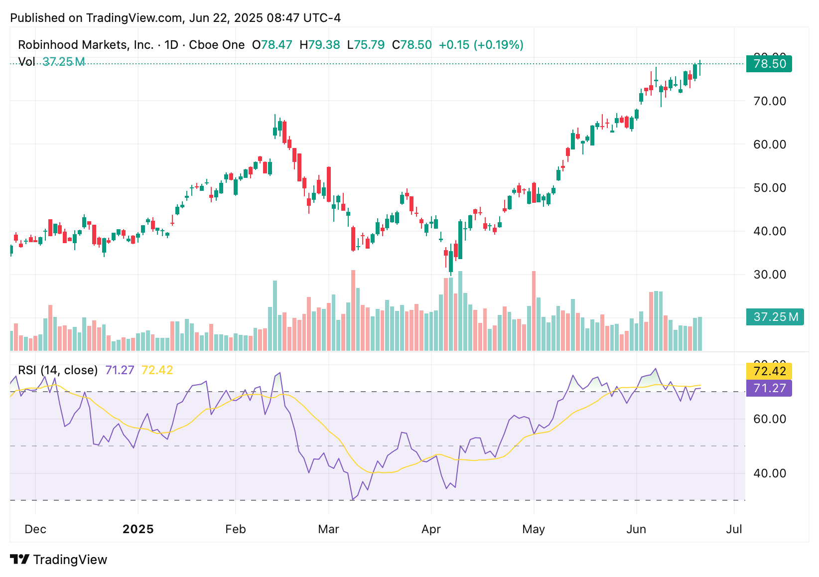 Note the chart of HOOD 0.00%↑ below, its the perfect example of relative strength. HOOD is up from under $30 to almost $80 a share since the April 2025 lows.